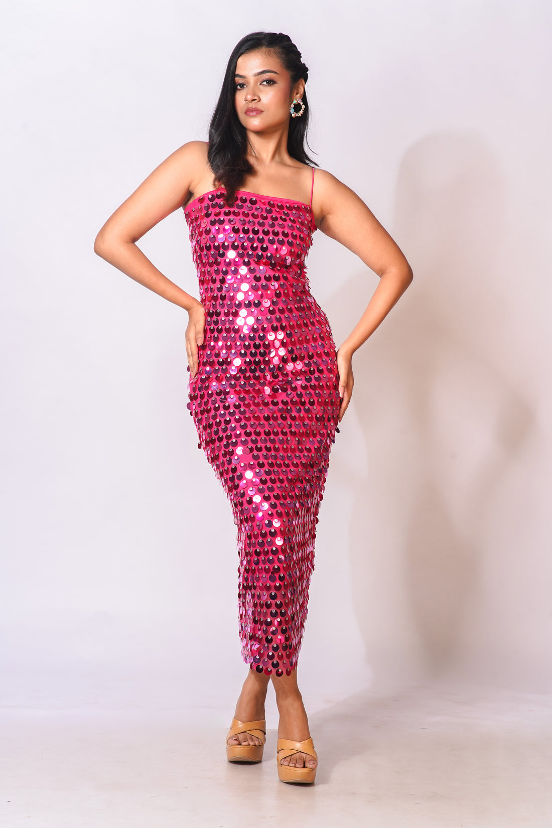 Pink Shimmer Cocktail Dress – Sequin Maxi Party Dress, Statement Evening Look