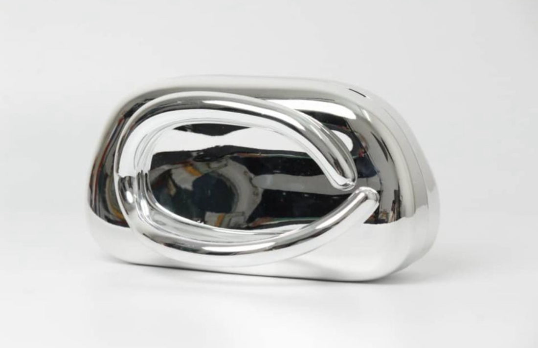 Luna Chrome Clutch – Sculpted Metallic Evening Bag, Modern Statement Accessory with High-Gloss Finish