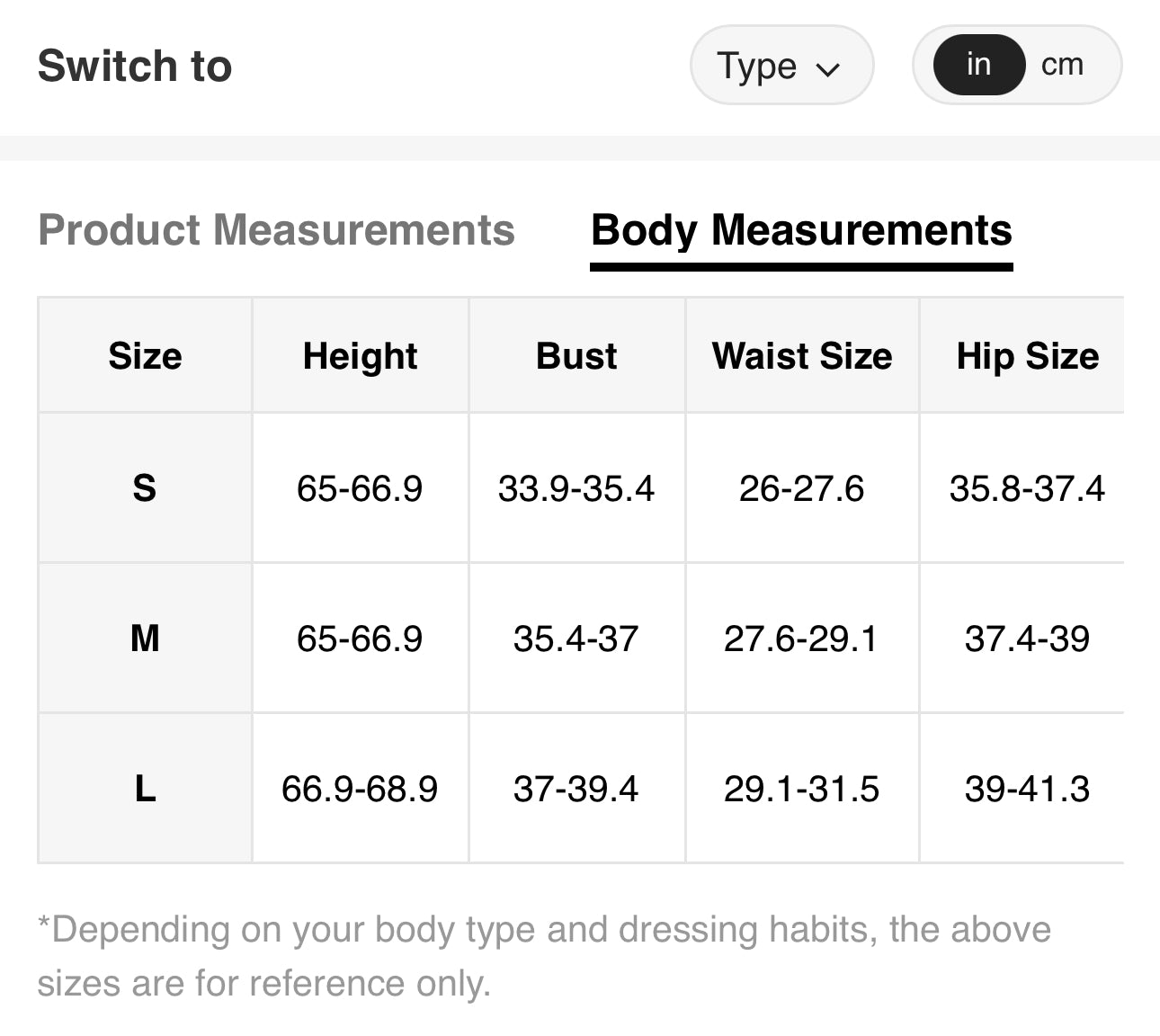 Größentabelle Aktie