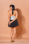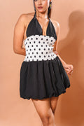 Black & White Polka Dot Mini Dress – Halter Neck Bubble Hem Dress, Flirty Resort & Night-Out Look