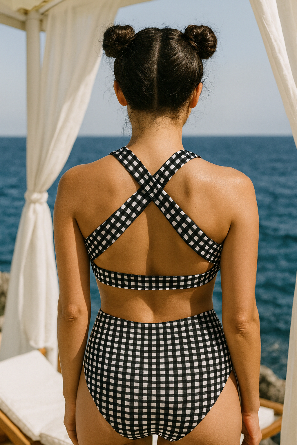 • Classic Retro Gingham Print: Black and white check pattern gives a timeless, vintage-inspired look — perfect for summer vacations, pool parties, and beach weekends.