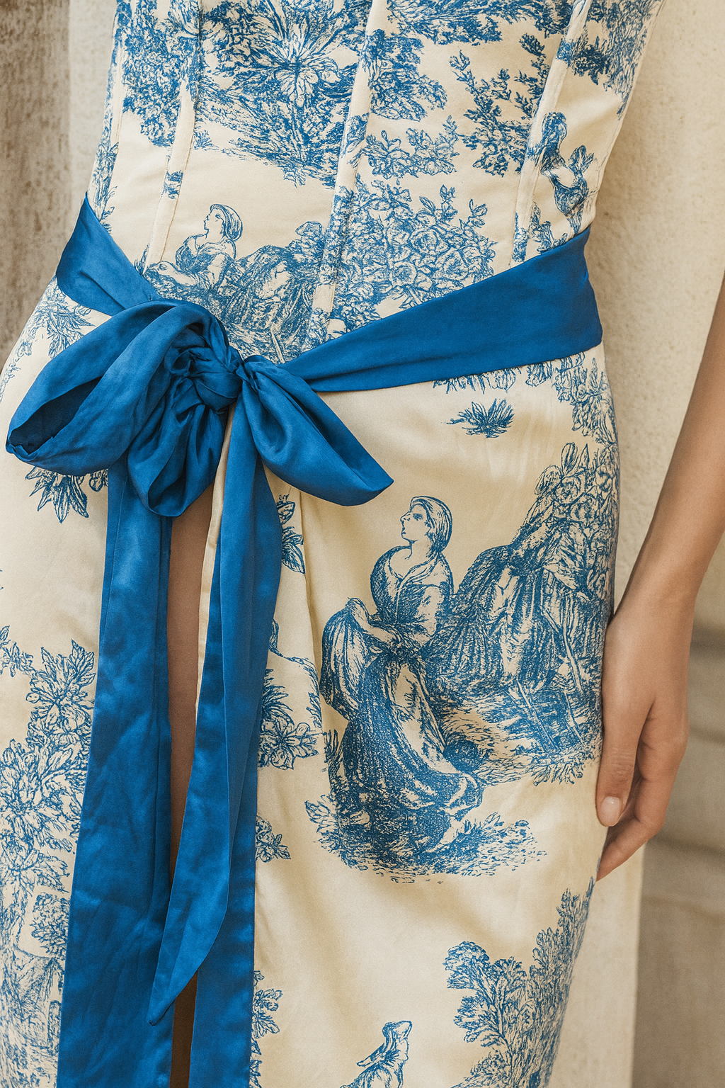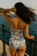 • Elegant Toile Print Design: Features a classic blue-on-ivory French toile pattern for a timeless, high-end resort look inspired by European summers and luxury beach clubs.