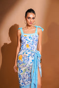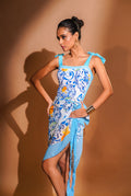 • 2-Piece Swim & Cover-Up Set: Includes a vibrant printed one-piece swimsuit and a matching tie-up cover-up skirt for an effortless, coordinated resort look.