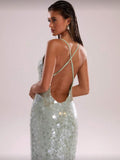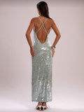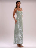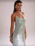 Soléa Aqua Allure Sequin Slip Gown – Iridescent Mint Maxi Dress with Satin Backing, Elegant Evening & Resort Wear