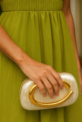 Aurora Shell Clutch Purse – Pearl Finish Sculpted Evening Clutch with Gold Accent
