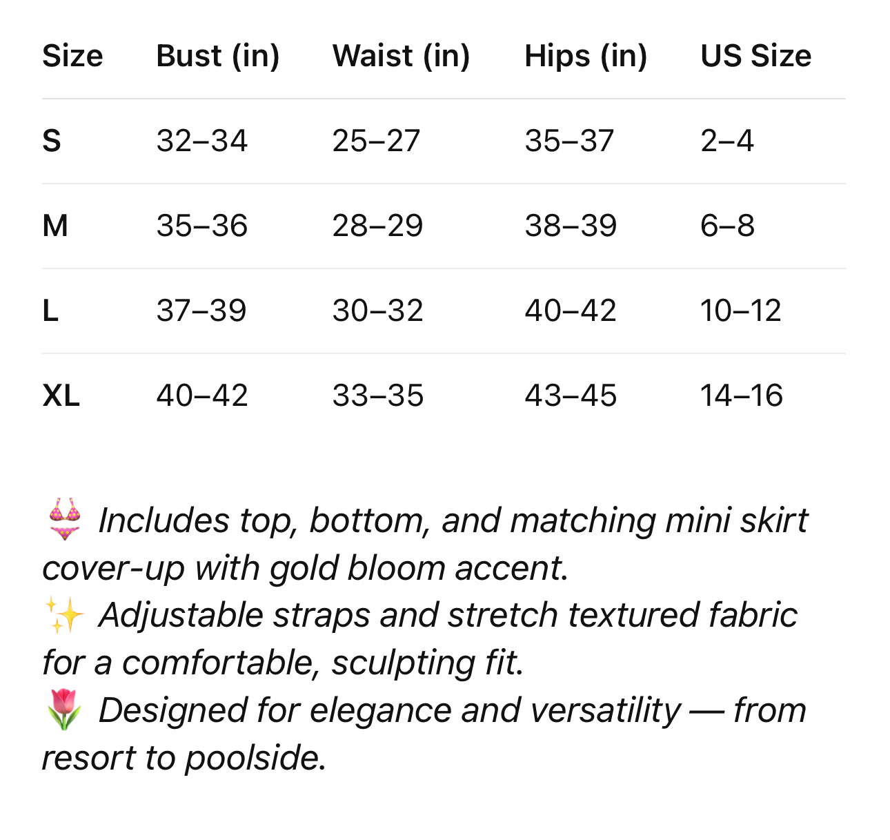• Elegant 3-Piece Set: Includes a textured bikini top, matching high-cut bikini bottom, and a coordinating wrap mini skirt for a complete, elevated resort look.
