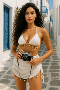 3-Piece Boho Bikini Set With Tie-Side Bottoms & Ruched Cover-Up Skirt