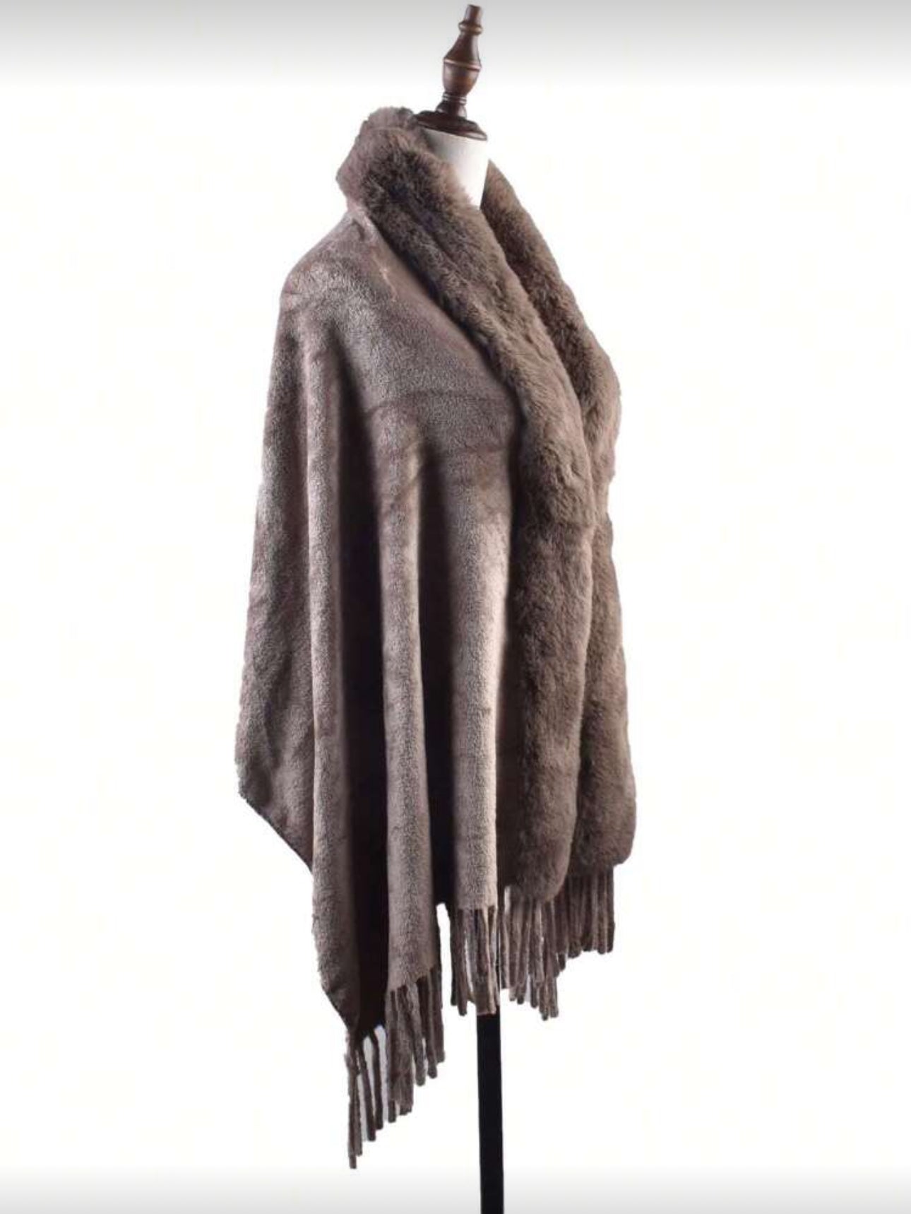 Velvet Luxe Plush Winter Shawl with Fringe