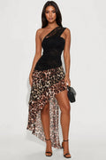 WildLace Asymmetrical One-Shoulder Leopard Mesh Gown