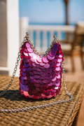 Rosada Glamour Purse – Pink Sequin Shoulder Bag, Shimmering Statement Accessory, Evening & Resort Wear Handbag