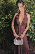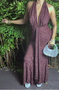 • Deep plunge halter neckline that enhances the bust and creates a bold, elongated silhouette